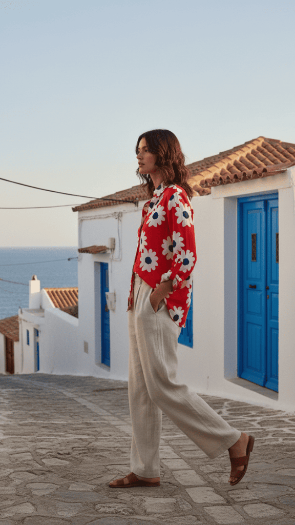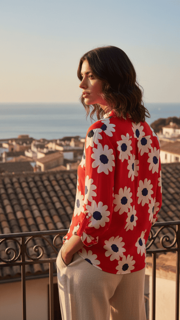 Cotton Flower Printed Shirt - Red